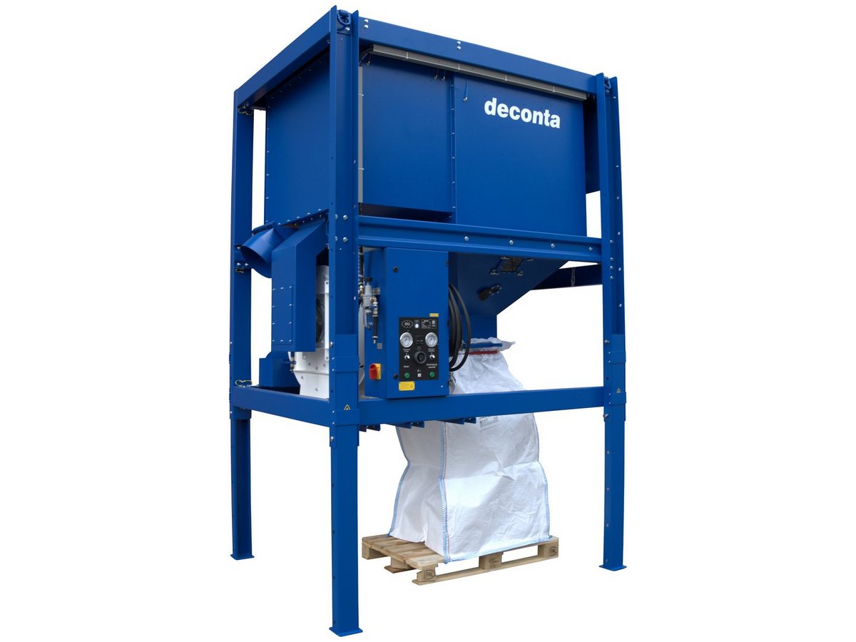 The dust produced is extracted via flexible hose lines and collected in a dust bunker. To empty the bunker, the entire system is raised on 4 telescopic supports. This creates the appropriate height and the bunker contents can be emptied into a big bag via a flap.